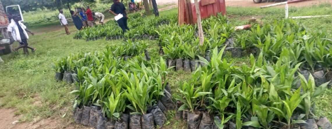 THE AGRIC DEPARTMENT IN ACDA DISTRIBUTED PALM OIL TREES TO FARMERS AT AFOAKO ON 21ST APRIL, 2022.