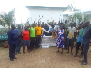 The Department of Agric in the Amansie Central District Assembly distributed Palm Oil trees to the farmers at Jacobu area on Friday 22nd September, 2023 at the forecourt of Agric department office of which Mr. Kwamena Bartels (Agric Director) and his staff were involved.